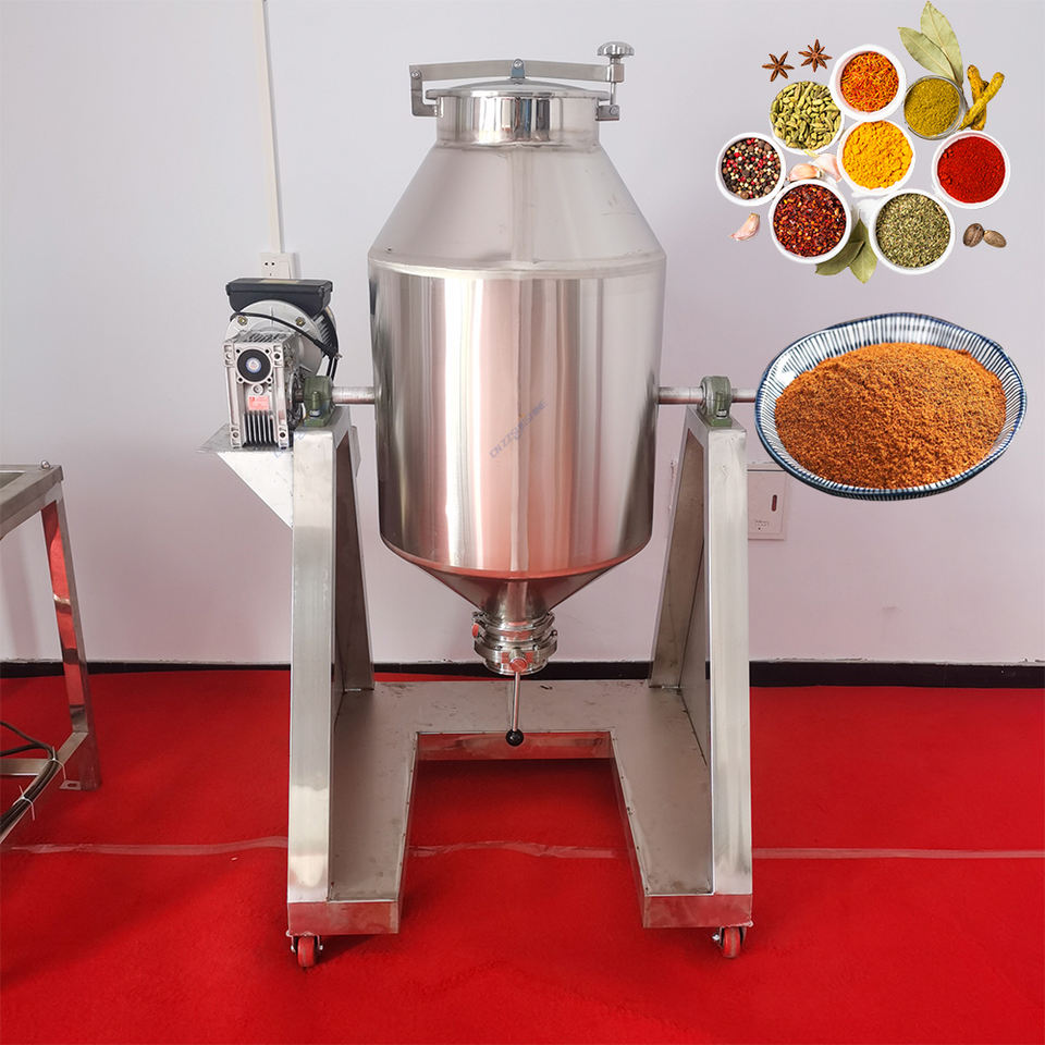 Mélangeur à tambour de poudre sèche en acier inoxydable Sus304 avec vanne papillon et moteur 220V conception 3D de qualité chimique
