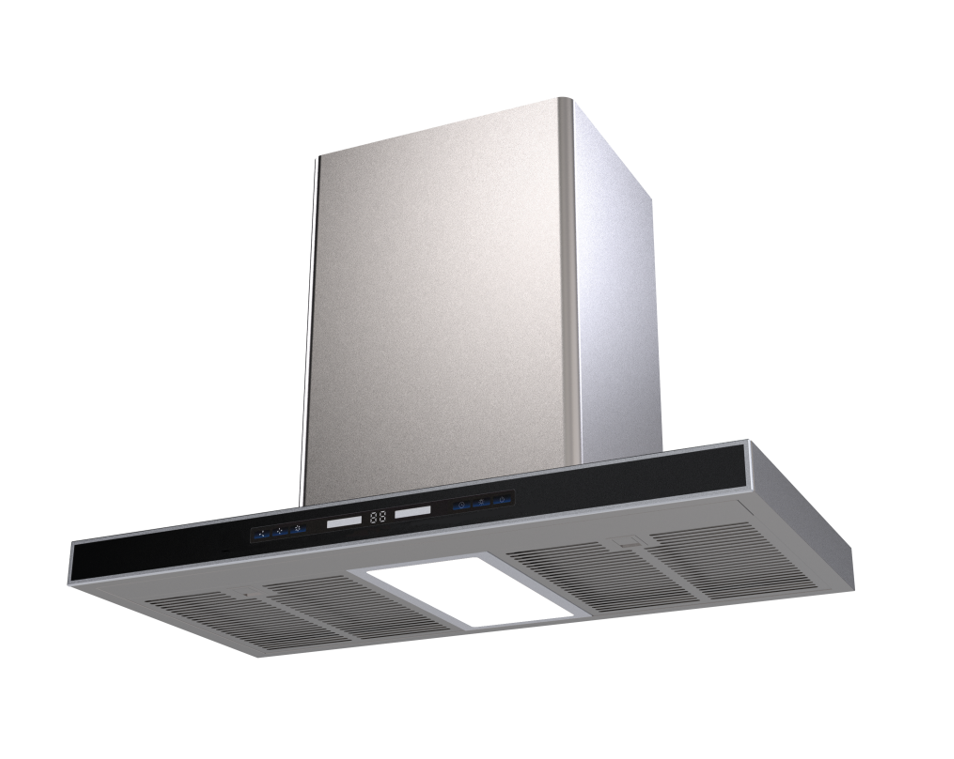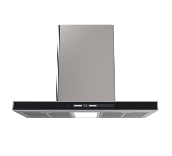 Hotte de cuisine îlot en acier inoxydable en forme de T avec commande tactile, éclairage LED, aspiration puissante pour cuisines ouvertes