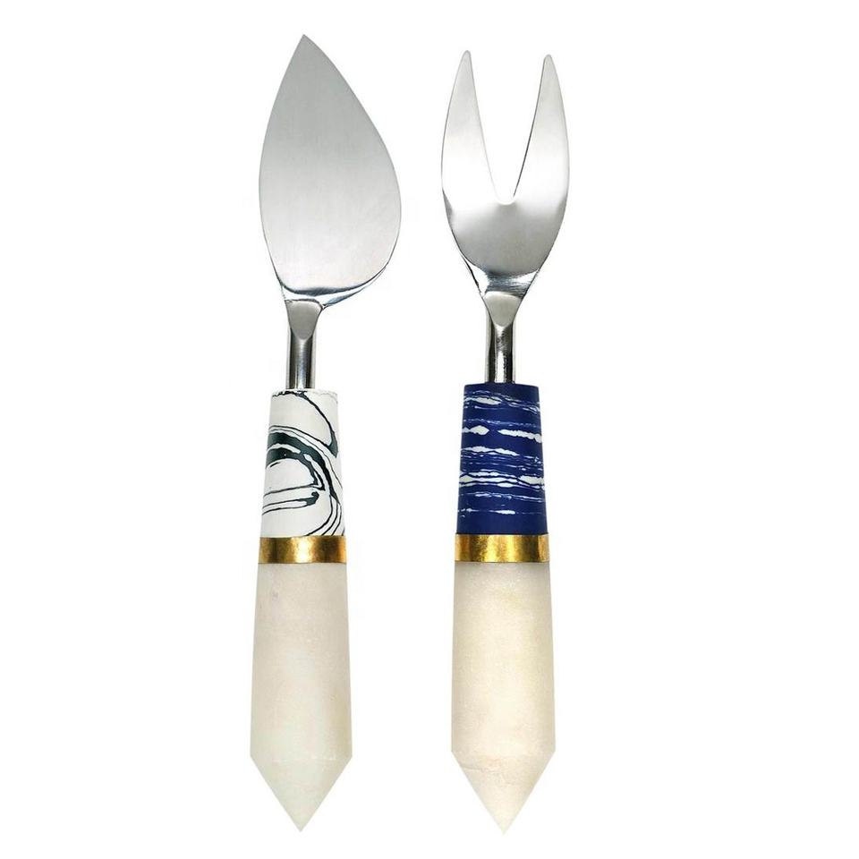 Service de fromage de luxe en acier, 4 pièces, fait à la main, avec un Look en marbre blanc, outil à fromage avec poignée en résine fait à la main