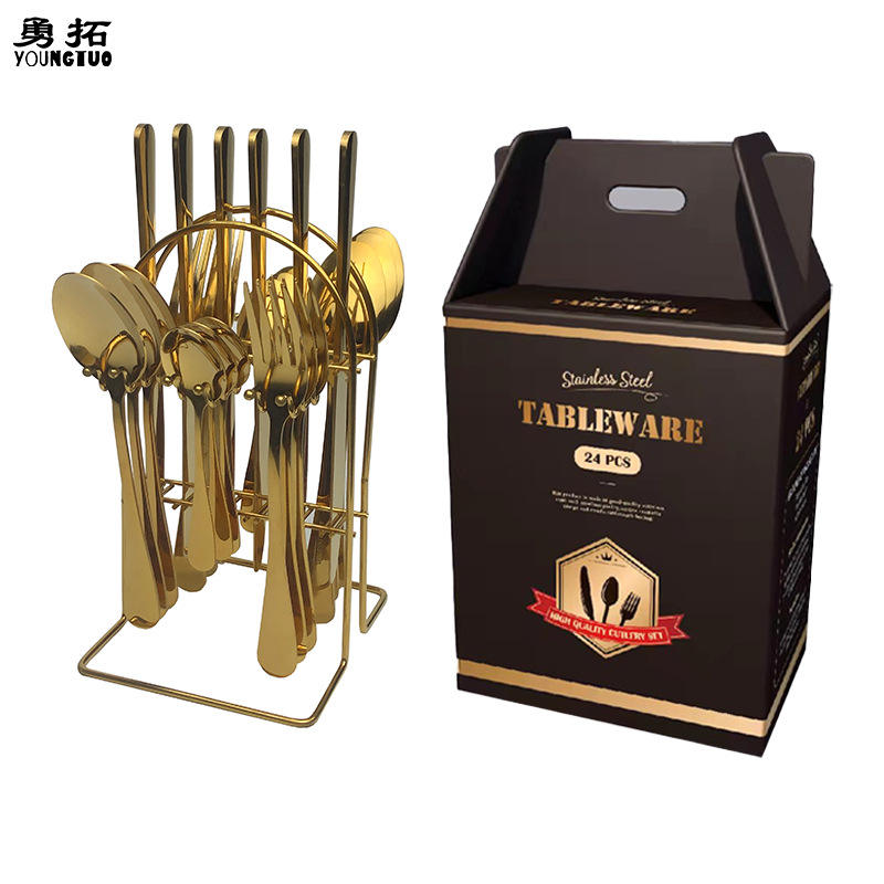 Ensemble de couverts en acier inoxydable, 24 pièces, style occidental, pour 6 personnes, avec support métallique, passe au lave-vaisselle