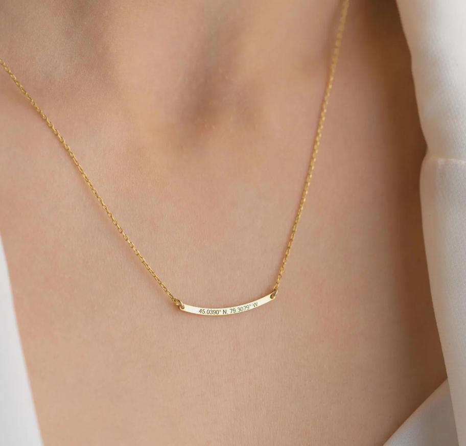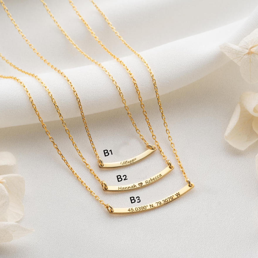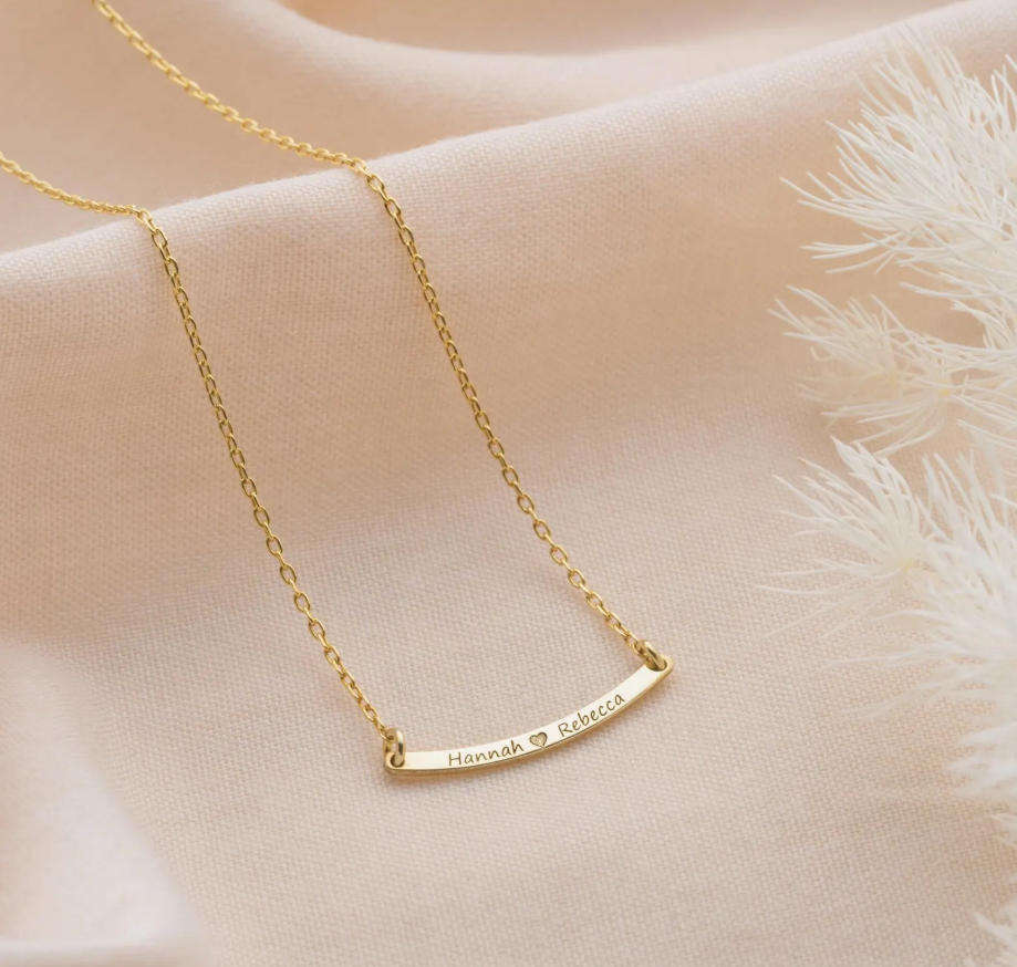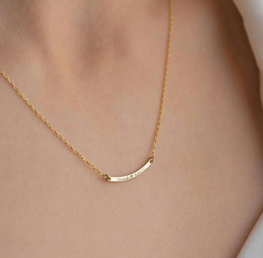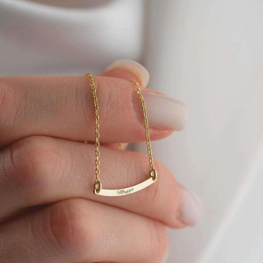 Collier en acier inoxydable résistant au ternissement, barre incurvée personnalisée, message, mots, collier délicat personnalisé avec nom, coordonnées, date