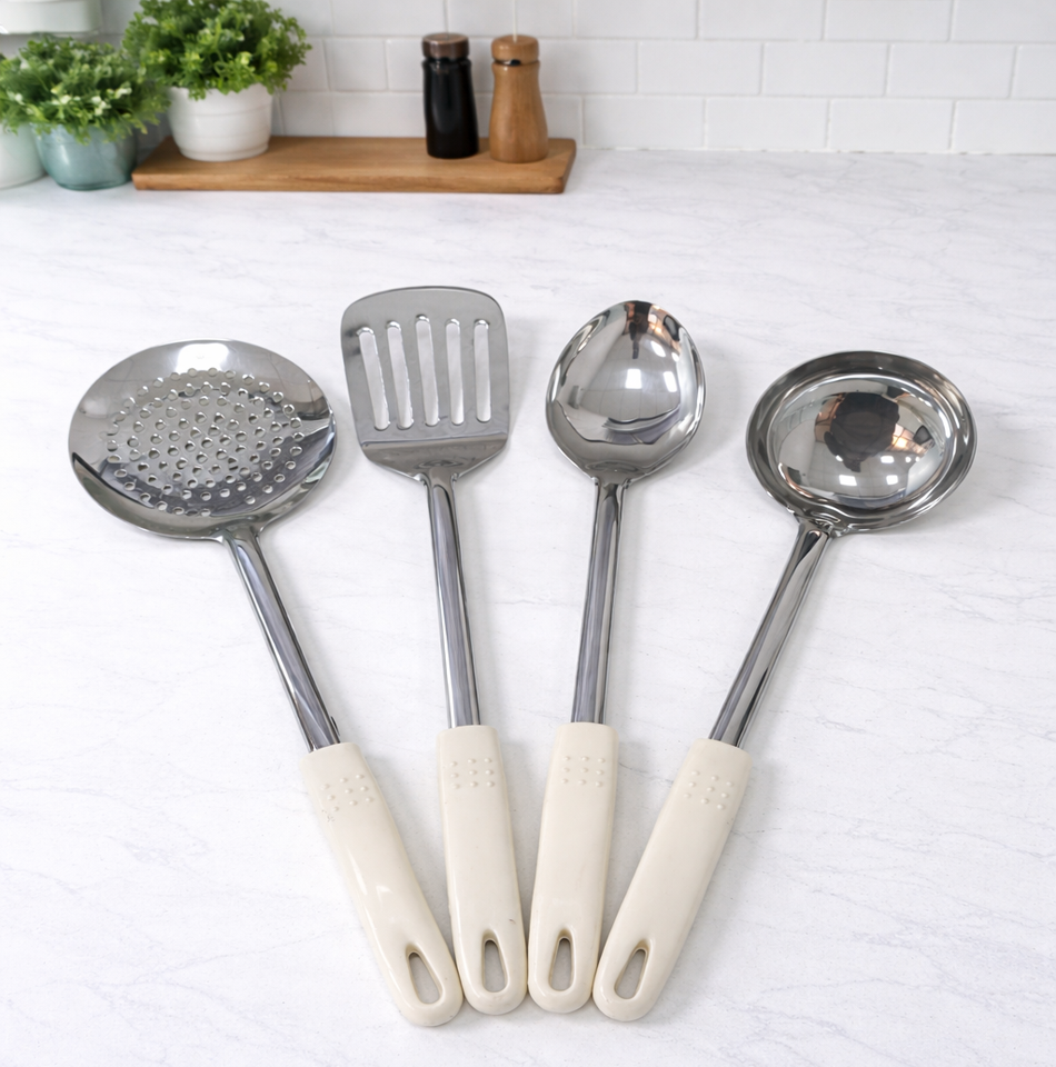 Ensemble d'outils de cuisine en acier inoxydable épaissi | Ustensiles de cuisine à long manche pour la restauration, les hôtels et les restaurants
