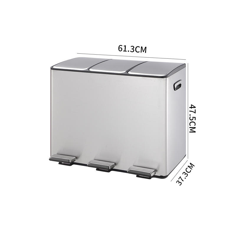 Poubelle à trois compartiments en acier inoxydable avec couvercle à fermeture douce, dotée d'une pédale à ouverture à 90 degrés pour une utilisation facile
