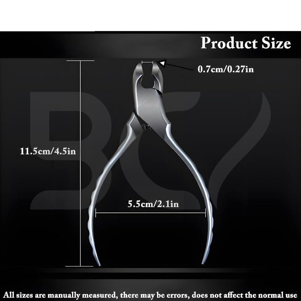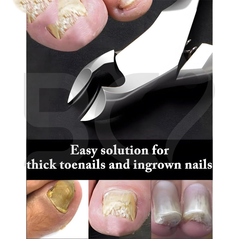 Coupe-ongles en acier inoxydable avec poignées rainurées, capuchon en plastique, lame courbée, ouverture large, professionnel, durable, pour podologie