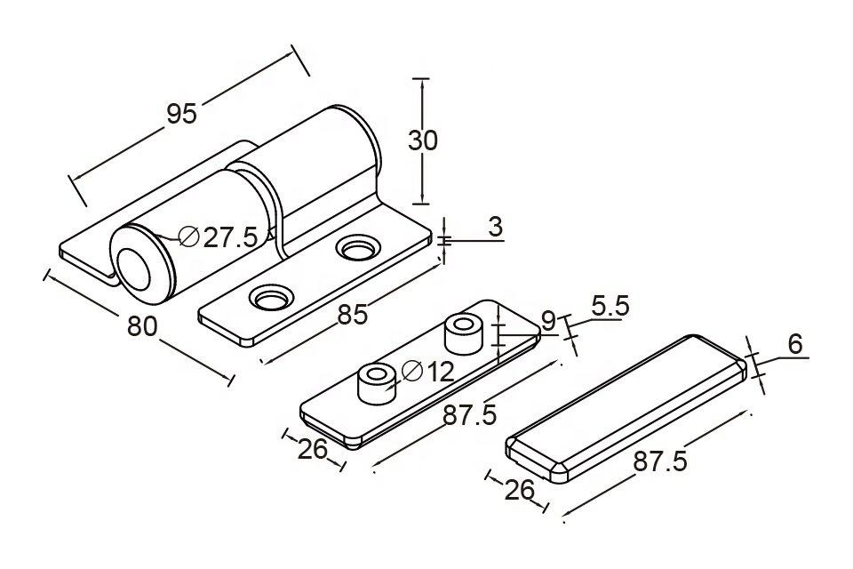 Taille:95mm L. x 80mm Ouvert W.