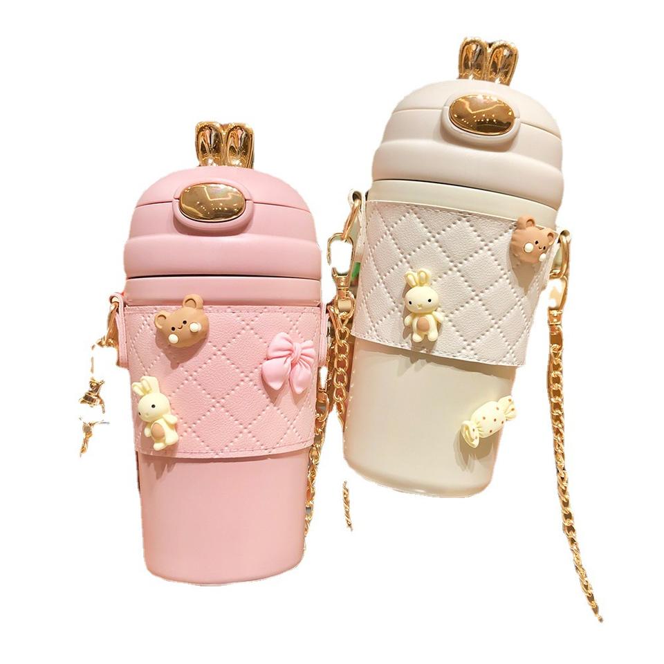 Tasses à café en céramique de voyage en acier inoxydable à double paroi, gobelet à motif de licorne de dessin animé, tasses réutilisables avec couvercles et pailles