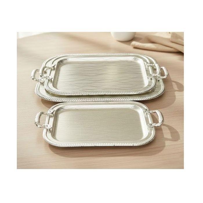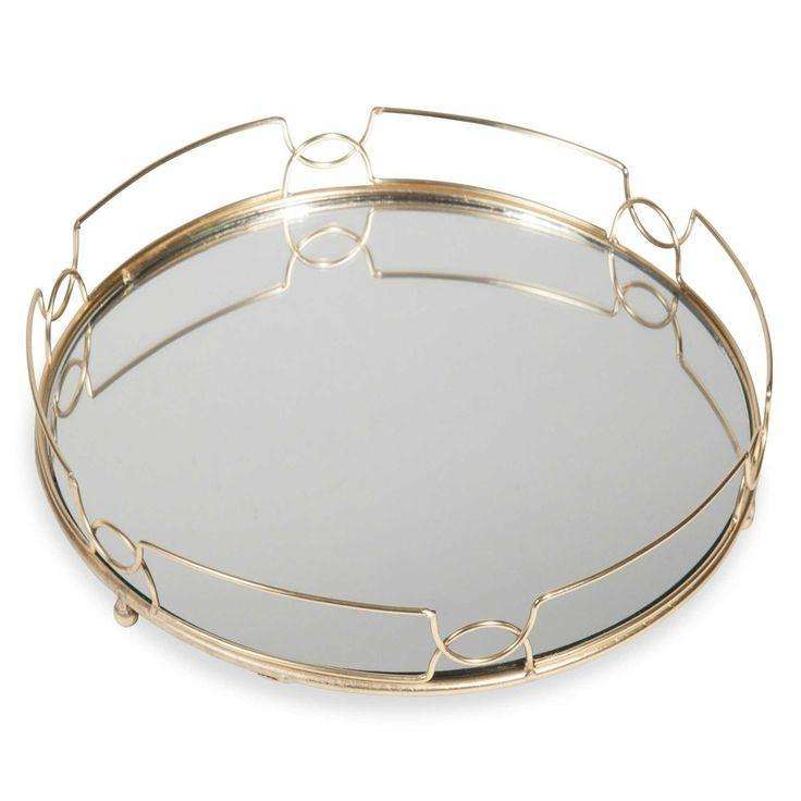 Plateau en acier inoxydable, plateau de service en métal, plateau rond pour aliments, plateau plat peu profond en acier inoxydable