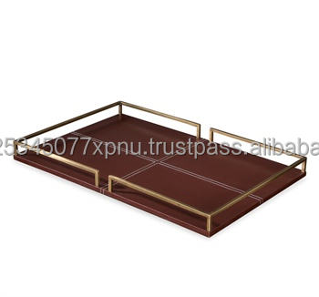 Plateau en acier inoxydable avec poignée en cuir Home Decore et plateau de table pour servir les aliments