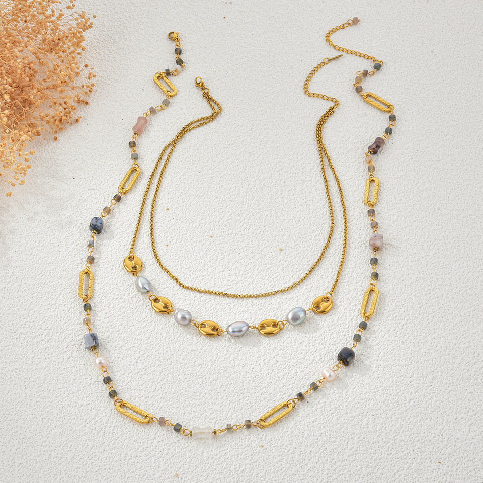 Collier élégant et tendance en acier inoxydable pour femmes, perles d'eau douce en pierre naturelle, liens en or, colliers de perles à la mode