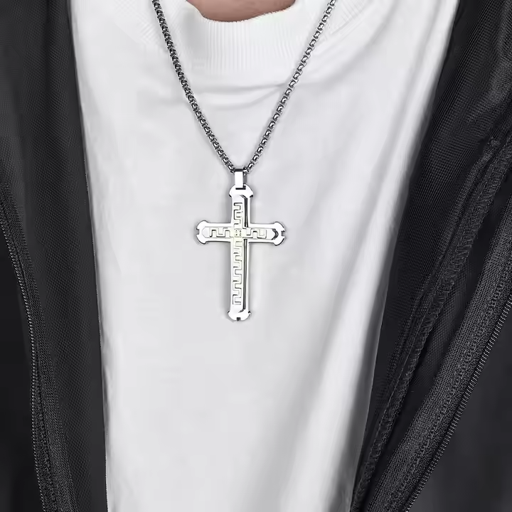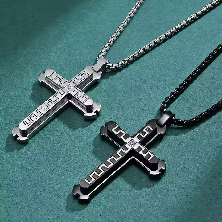 Collier à pendentif croix tridimensionnelle en acier inoxydable pour hommes Offre Spéciale avec chaîne à maillons Style tendance