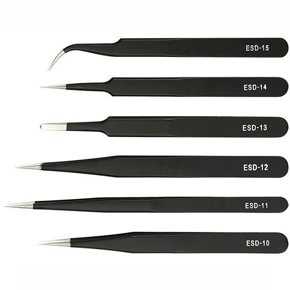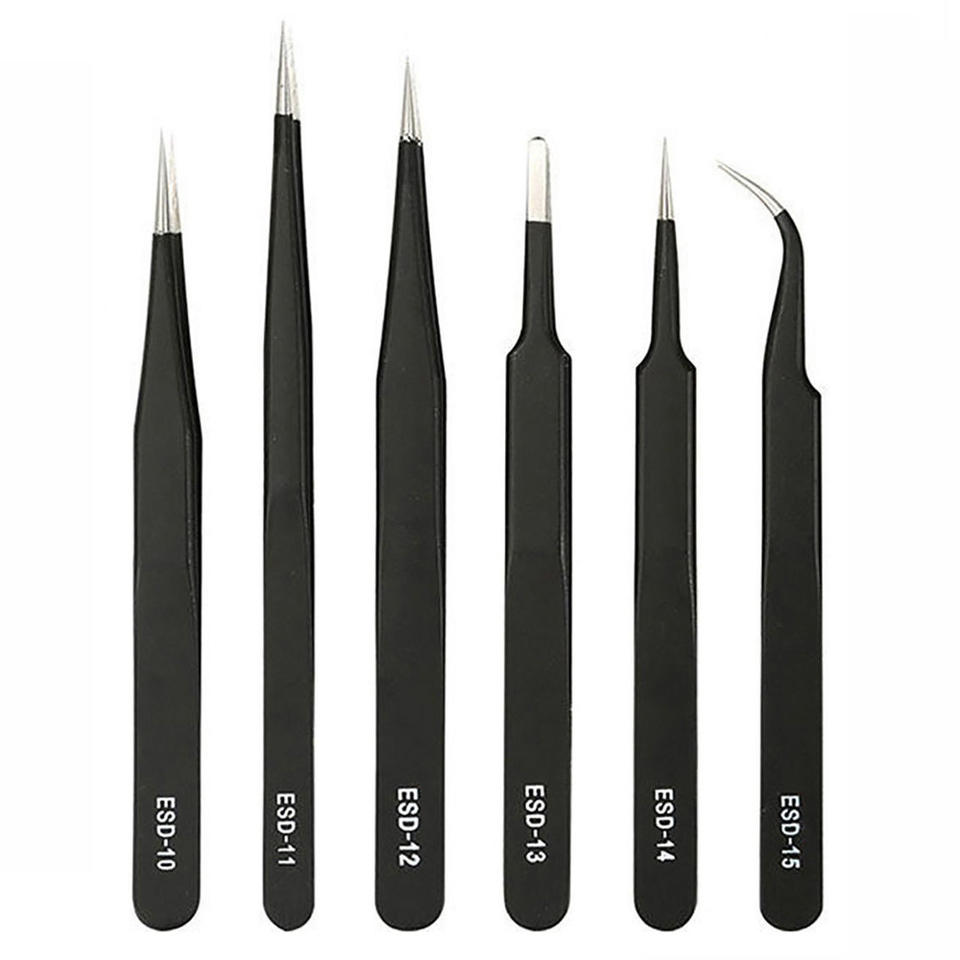 Ensemble de pinces à épiler en acier inoxydable ESD-10 à ESD-15, pointes plates courbées et pointues pour la réparation électronique et le nail art