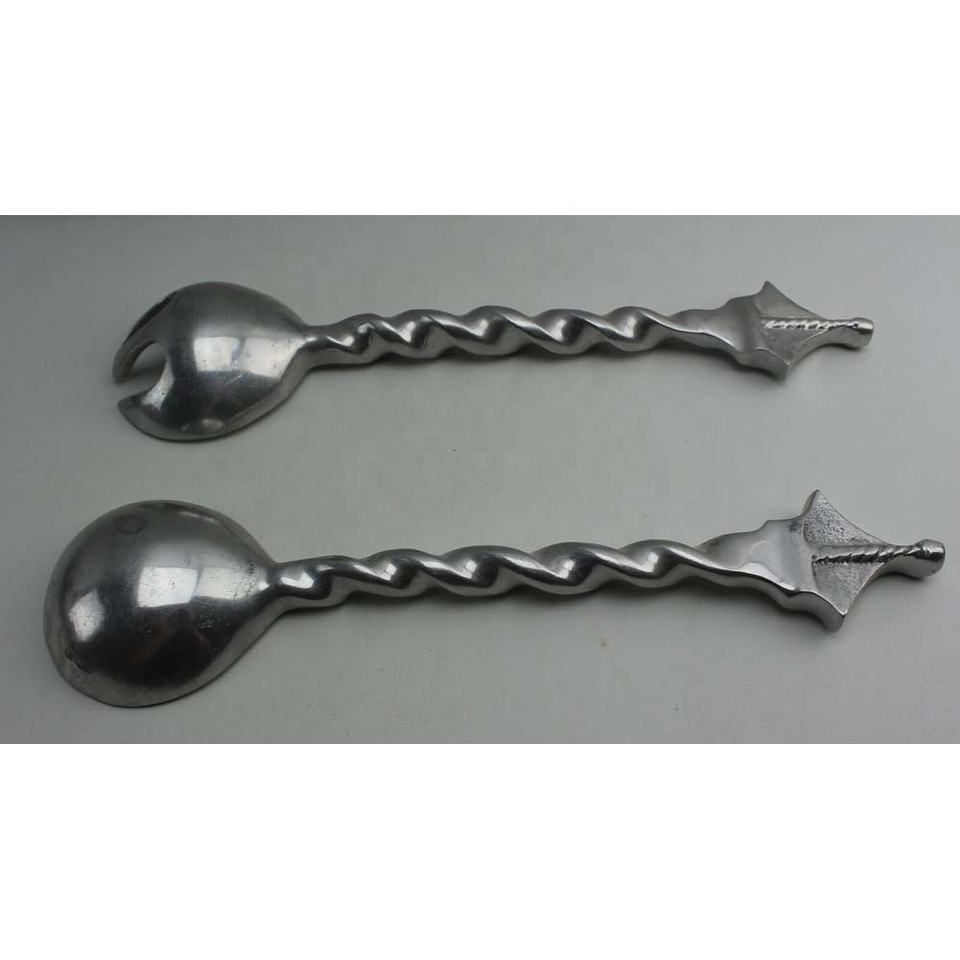 Ensemble cuillère et fourchette de service à salade design plaqué argent avec poignée torsadée en acier inoxydable pour mariage