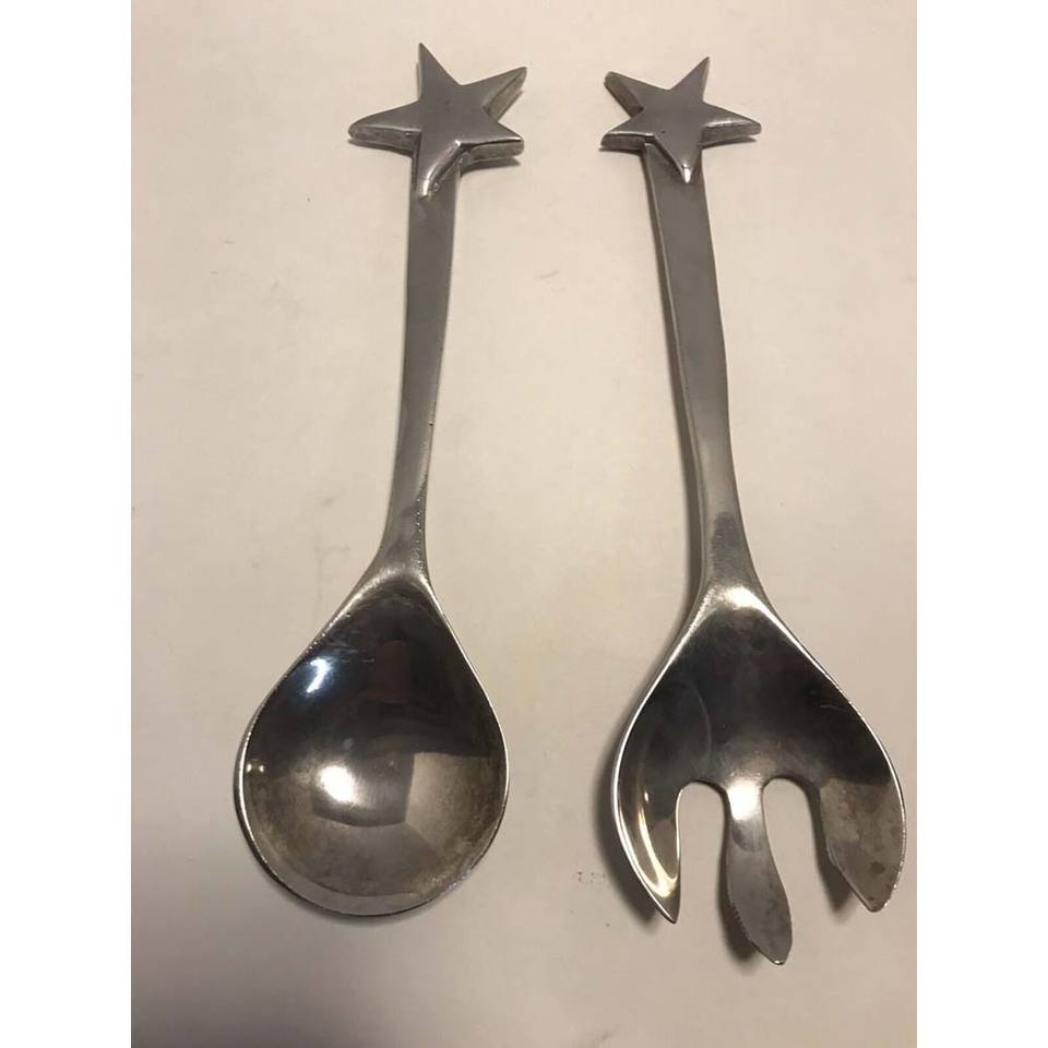 Ensemble cuillère et fourchette de service à salade design en acier inoxydable plaqué argent avec poignée en bout de triangle torsadé pour mariage