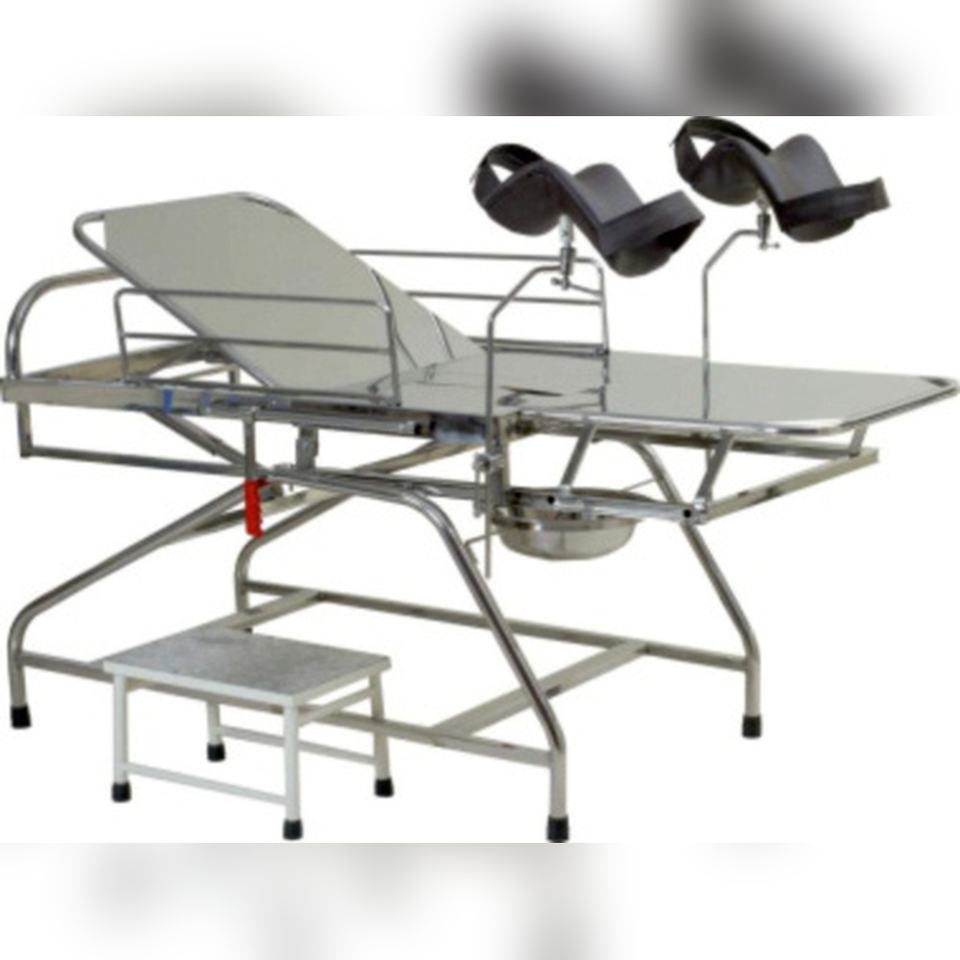 Table d'accouchement en acier inoxydable à deux sections avec dossier réglable et supports pour les jambes, mobilier hospitalier