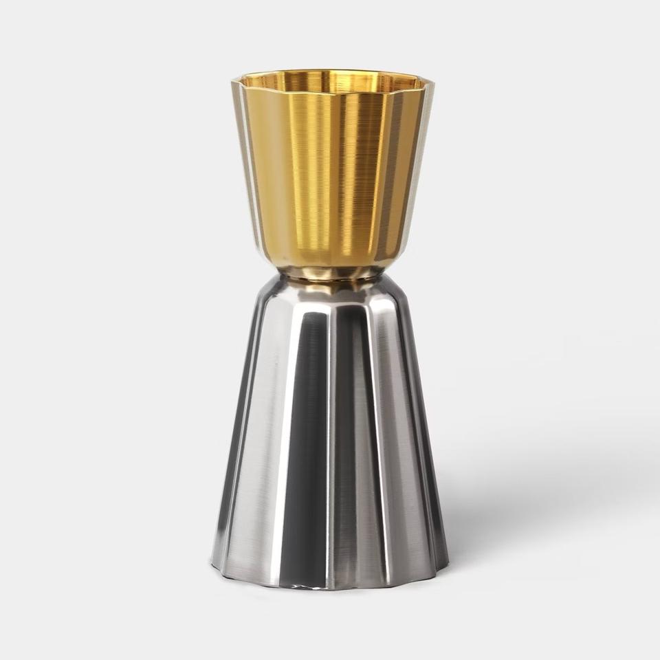 Jigger à double face en acier inoxydable bicolore or et argent, outil de mesure de précision pour cocktails avec un design élégant, versement précis