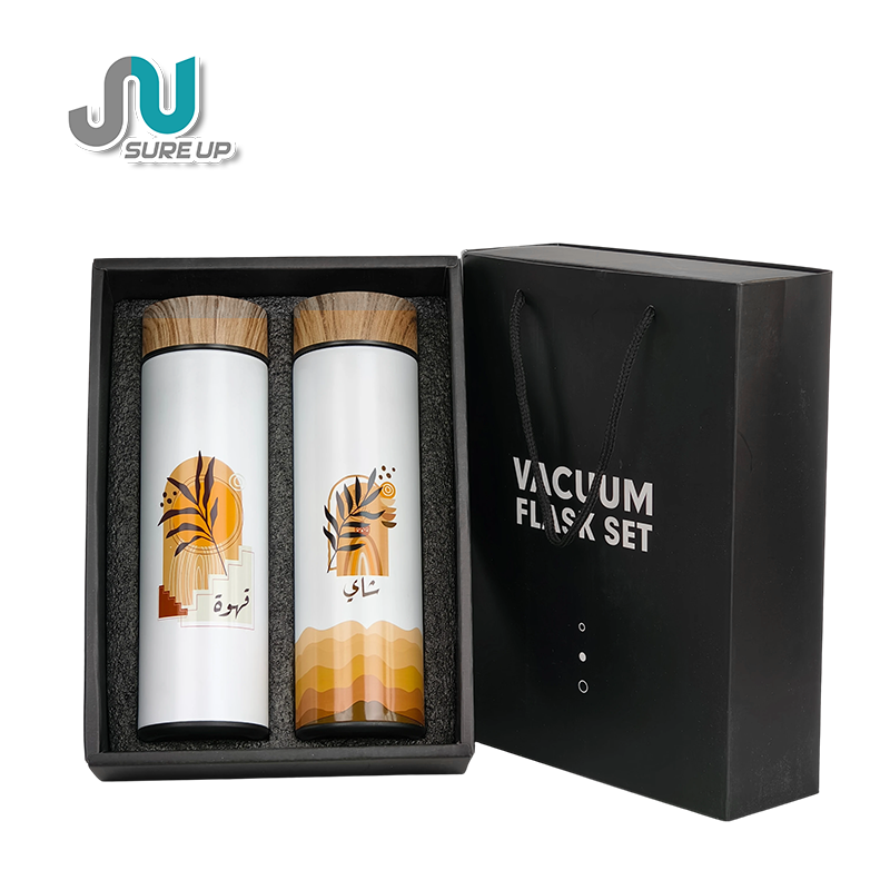 Coffret Cadeau Bouteille Isotherme en Acier Inoxydable 500ml avec Infuseur à Thé et Couvercle Effet Bois – Cadeaux Souvenirs Personnalisables en Gros pour le Tourisme Culturel