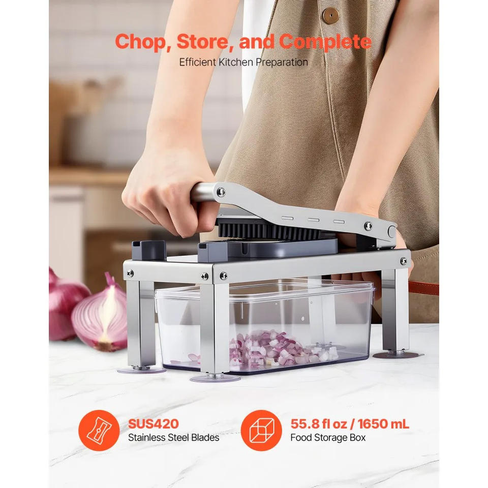 Hachoir à légumes en acier inoxydable avec 10 lames – Hachoir professionnel pour aliments avec récipient, pour salades, oignons, tomates, fromages