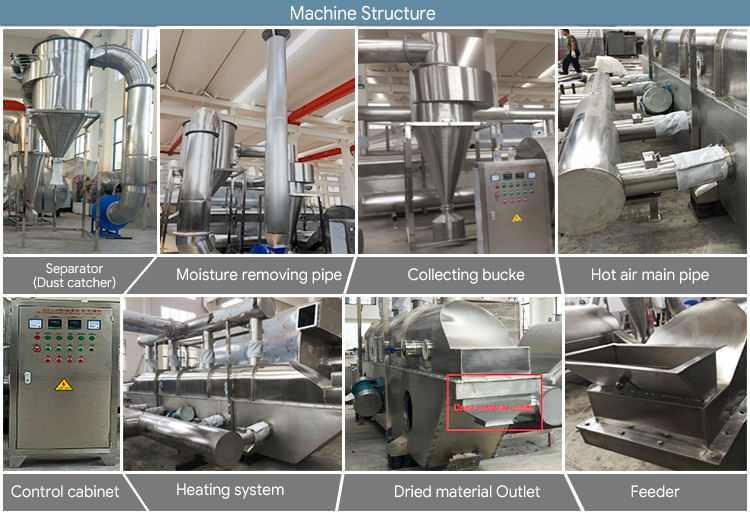 Machine de séchage et granulateur à lit fluidisé vibrant en acier inoxydable pour la transformation alimentaire avec composants moteur et engrenages