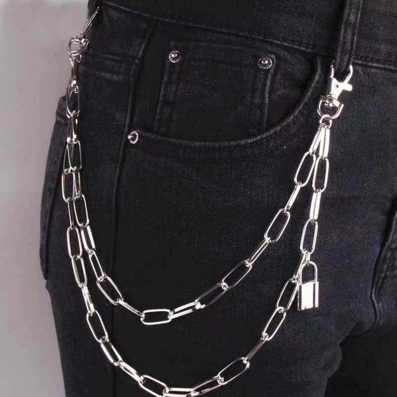 Chaîne de taille en acier inoxydable à double anneau, style punk, accessoire de mode hip-hop pour les jeunes