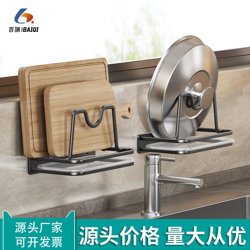Égouttoir mural en acier inoxydable avec support pour couvercles et rangement pour planches à découper, taille L, multifonctionnel