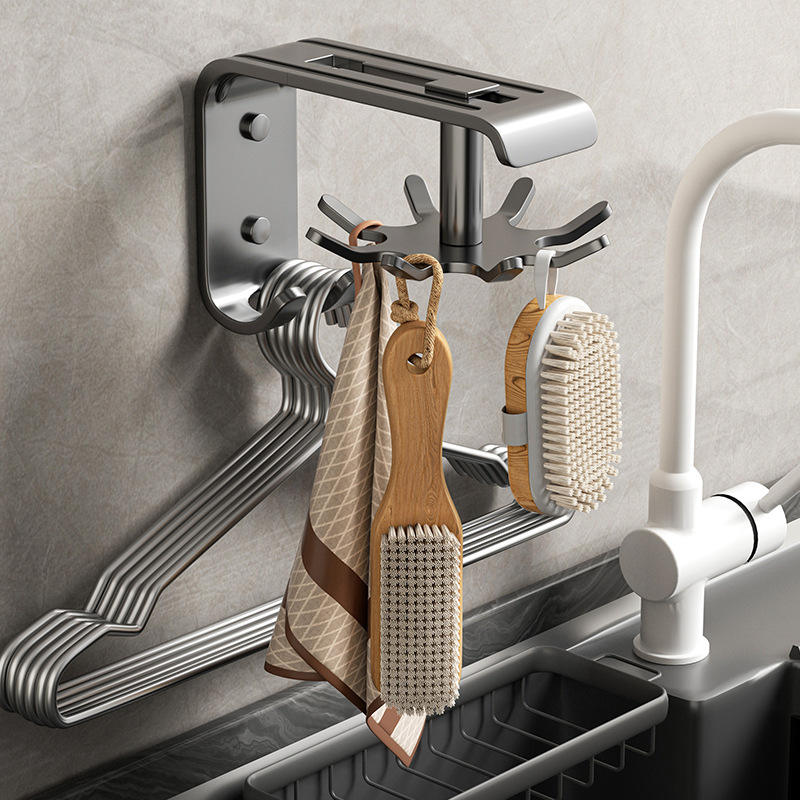 Crochets de cuisine muraux en acier inoxydable avec rail coulissant et design pivotant pour le rangement de la vaisselle, forme rectangulaire 223