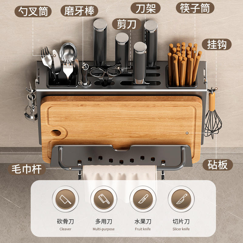 Support mural multifonctionnel en acier inoxydable pour couteaux, hachettes, baguettes et cuillères