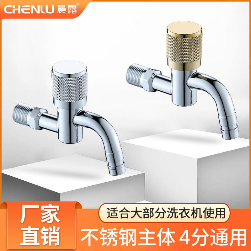 Robinet de machine à laver en acier inoxydable 4 points, eau froide simple, avec poignée, installation facile pour évier de buanderie