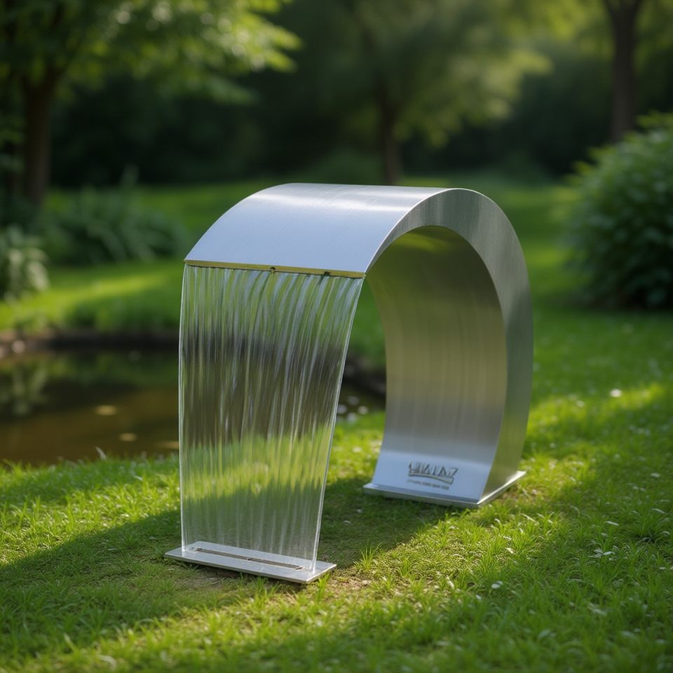 Fontaine de piscine en cascade en acier inoxydable 17,7 x 11,8 x 23,6 pouces, élément décoratif extérieur moderne pour jardin, design durable