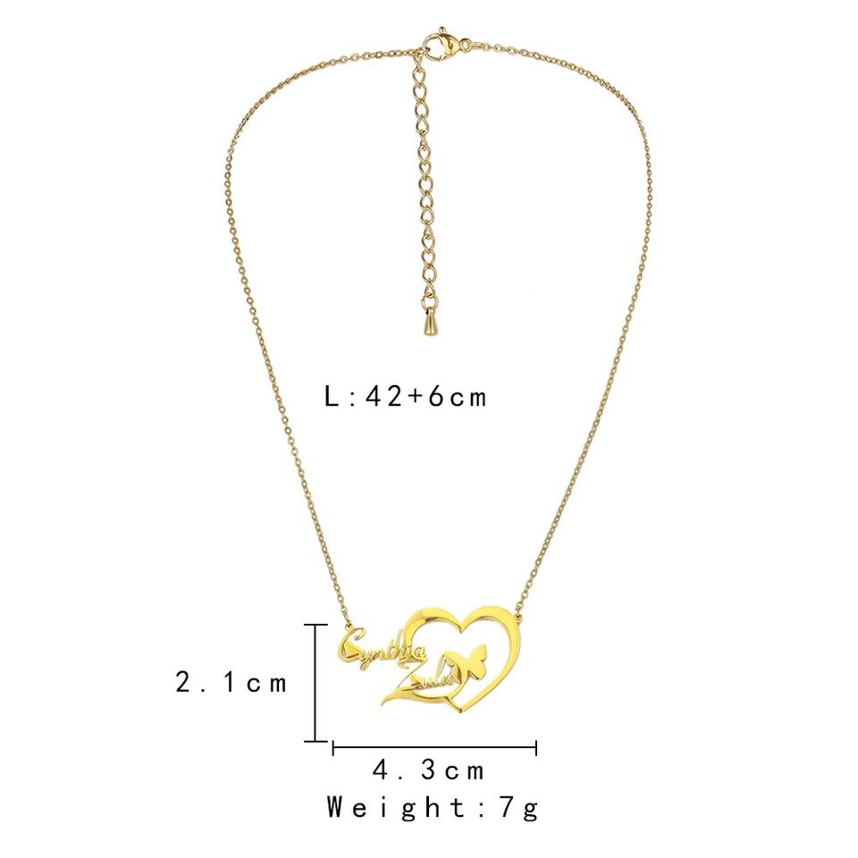 Chaîne à maillons personnalisée en acier inoxydable étanche pour les femmes Collier romantique avec nom de coeur de papillon avec incrustation de réglage de griffe