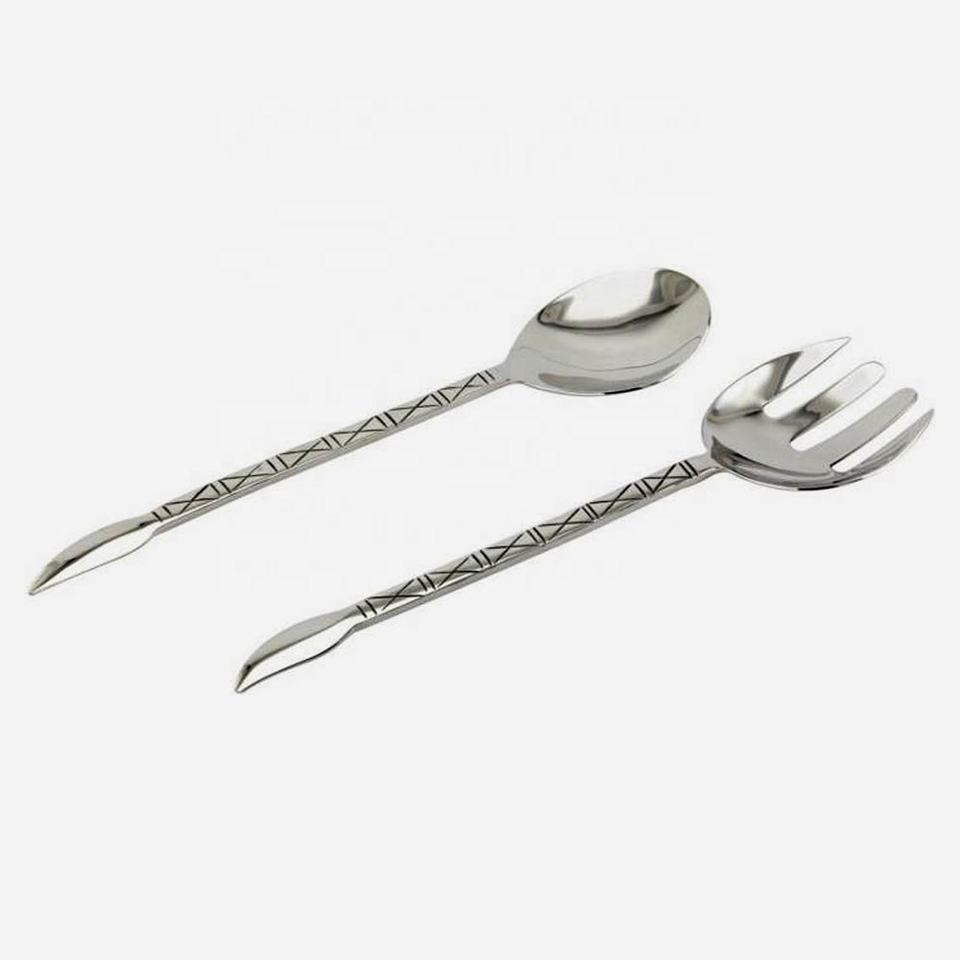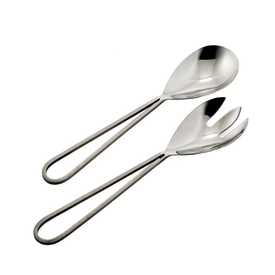 Ensemble de serveur de salade à poignée incassable fait à la main Unique creux conception de goutte serveur de mariage en acier inoxydable utilisation en métal servant