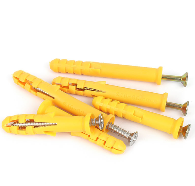 Cheville d'ancrage en acier inoxydable, cheville d'expansion auto-perceuse en nylon jaune en forme de poisson pour cloisons sèches