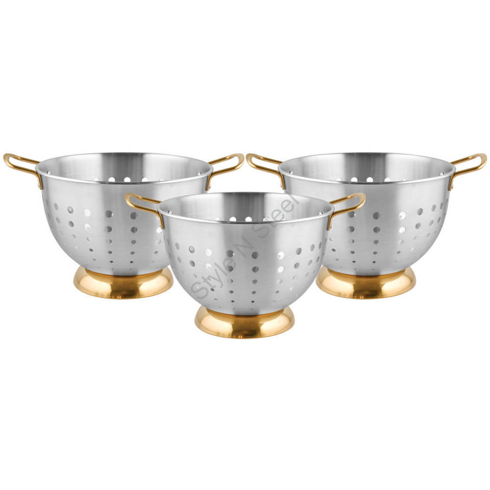 Name:steel wholesale premium city colander with a gold handle 3-piece set