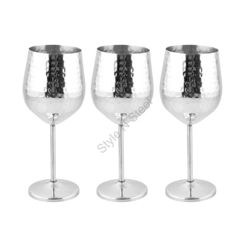 Name:Stainless steel Wine Goblet Hammered 3 Pcs Set