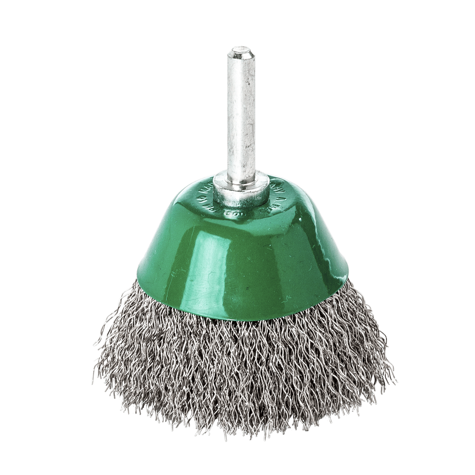 Brosses de surface STB avec tige de 6 x 30 mm, diamètre 50 mm, fil d'acier inoxydable ROF, ondulé 0.30 mm, hauteur des poils 20