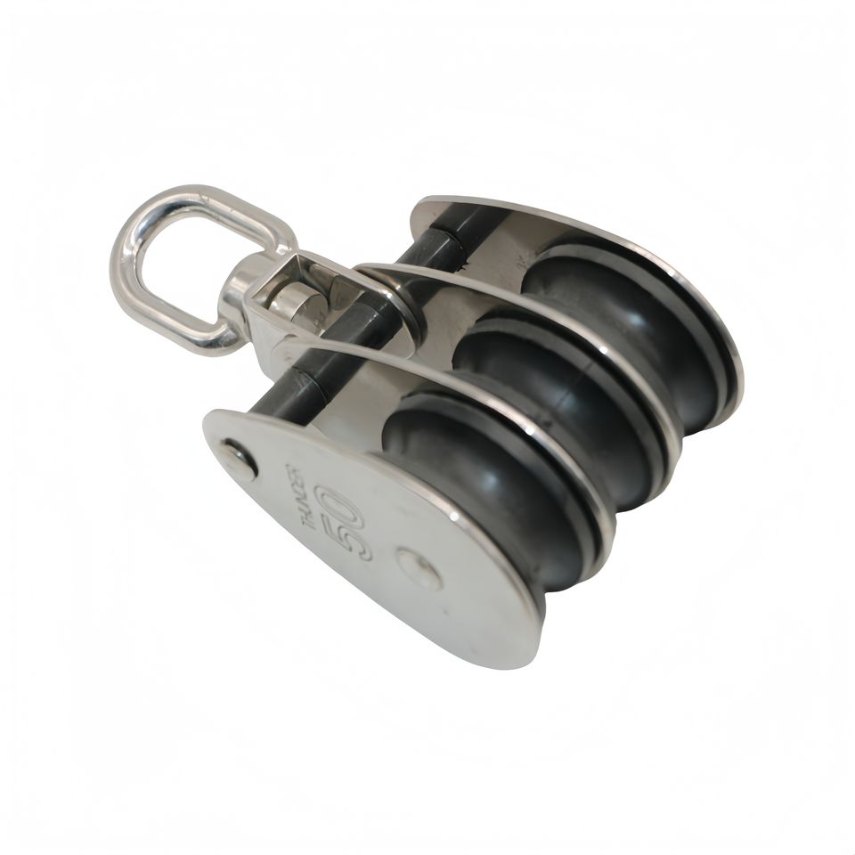 Poulie de câble métallique en acier inoxydable Poulie à triple poulie de bateau marine pivotante à roue en nylon