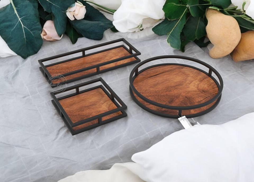 Ensemble élégant de 3 plateaux en métal avec poignées élégantes, parfait pour l'organisation du service et la décoration intérieure Solution d'affichage polyvalente