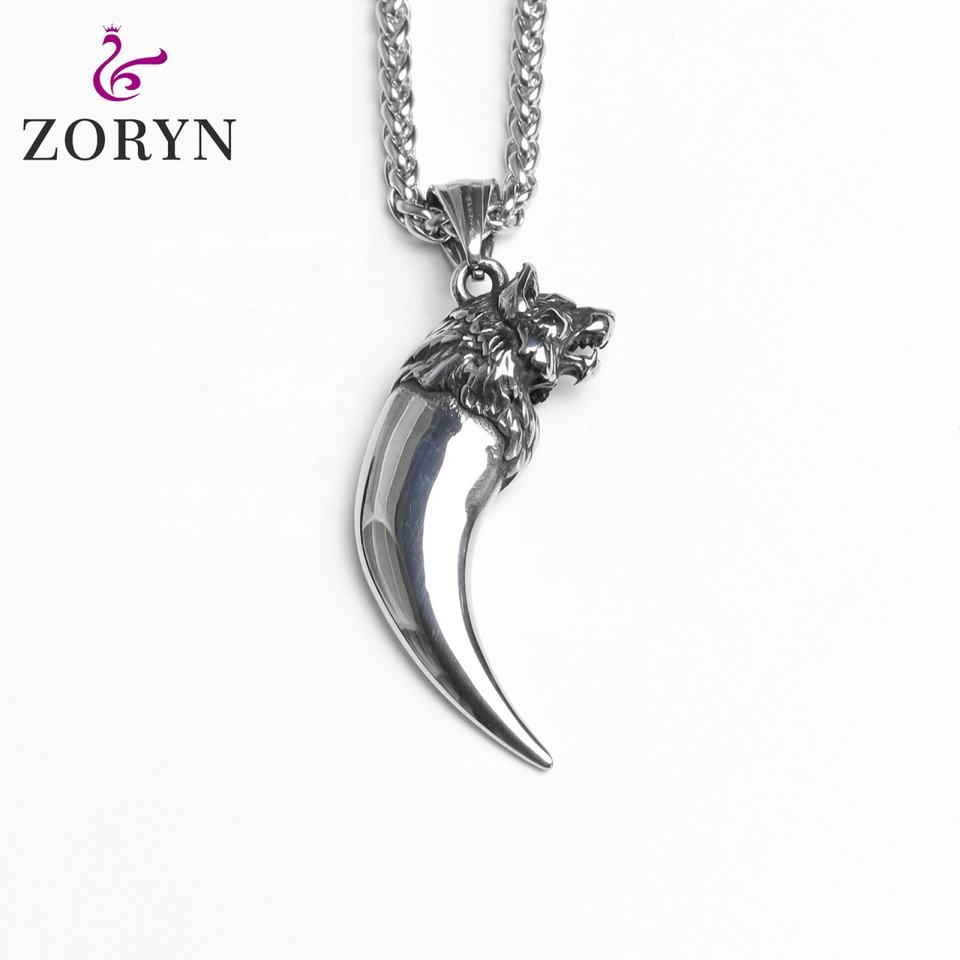 Colliers pendentifs tête de loup en acier inoxydable, style viking, gothique, punk, vintage, bijoux de mode en acier titane pour hommes