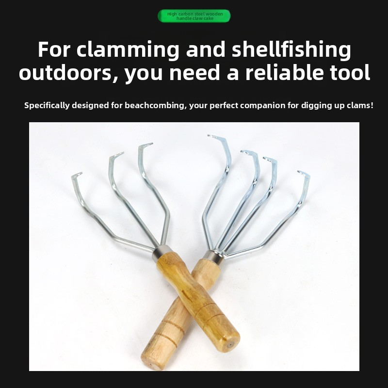 Râteau en bois en acier inoxydable pour creuser des palourdes, des palourdes et des plantes aquatiques, râteau en fer spécial pour le peignage et le creusement