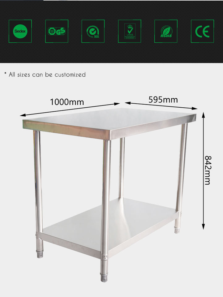 Table de travail en acier inoxydable pour le travail préparatoire Table robuste de cuisine commerciale en métal pour la maison de restaurant et l'hôtel