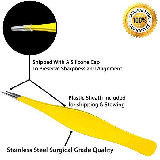 Pincettes pointues jaunes en acier inoxydable pour épiler les poils incarnés et morts
