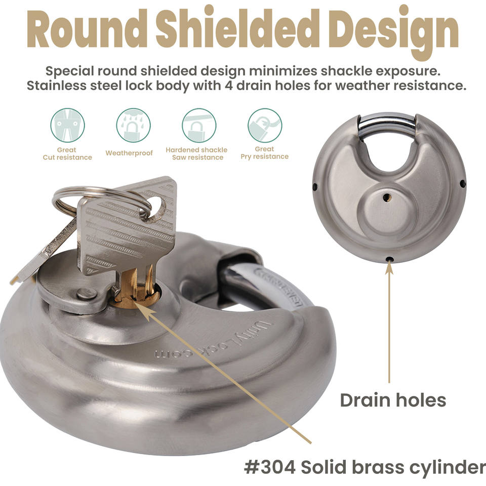 Cadenas à disque en acier inoxydable avec couvercle anti-poussière, garde le cylindre propre, protection de rainure de clavette de 2 à 3/4 pouces (70mm), idéal pour camion, remorque, fourgon