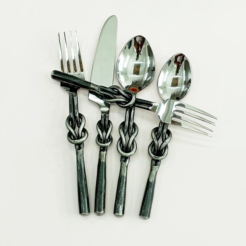 Ensemble de couverts en acier inoxydable plaqué argent avec poignée à noeud moyen de style unique Ensemble de couverts de haute qualité pour la maison et l'hôtel
