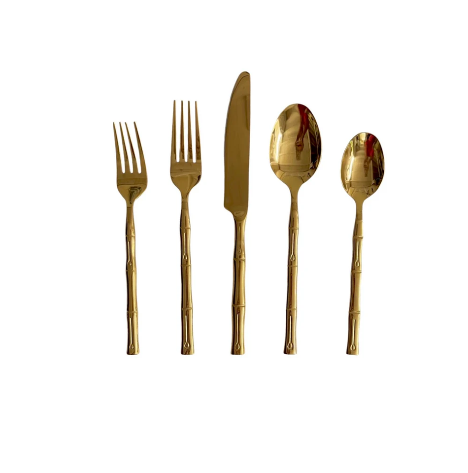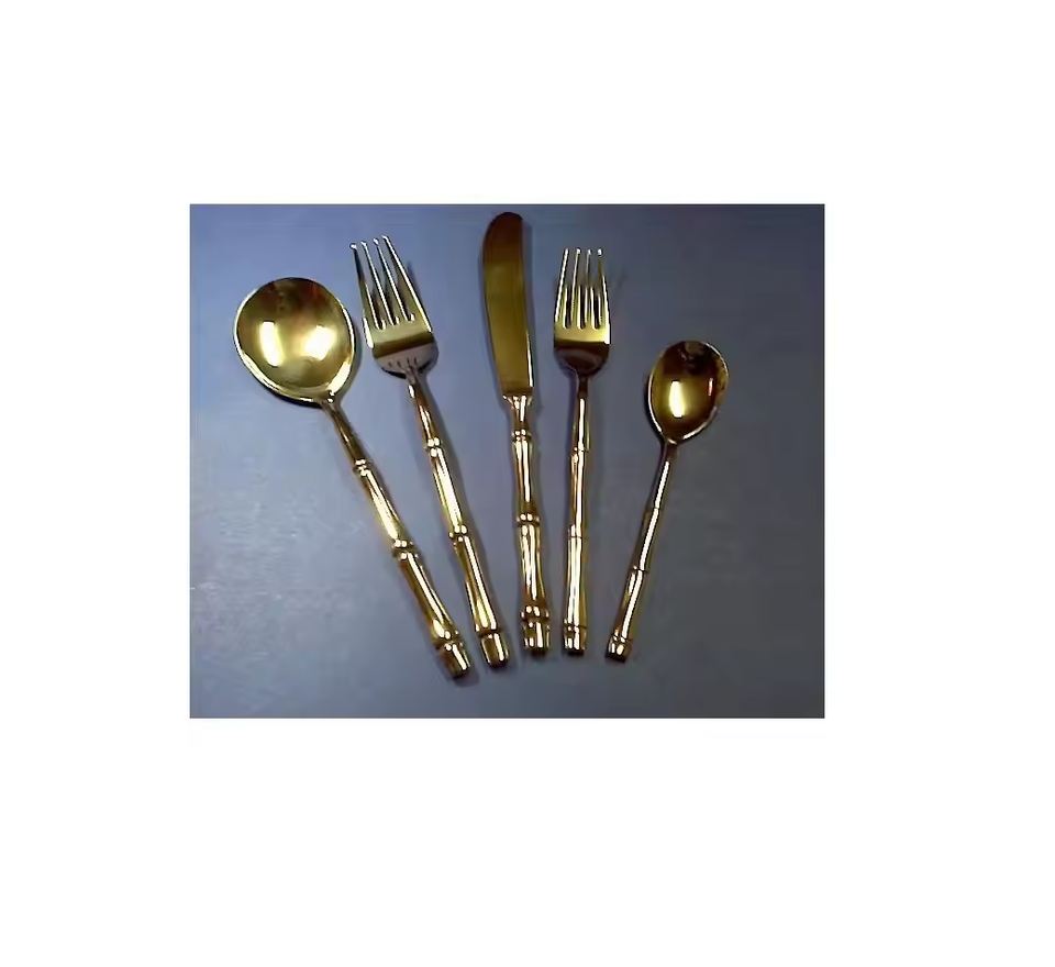 Ensemble de couverts cuillère en acier inoxydable manche en laiton bambou design personnalisé prix compétitif de l'inde