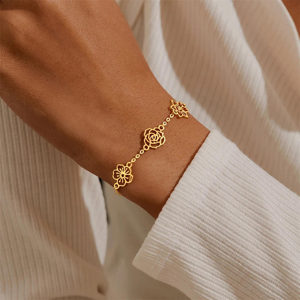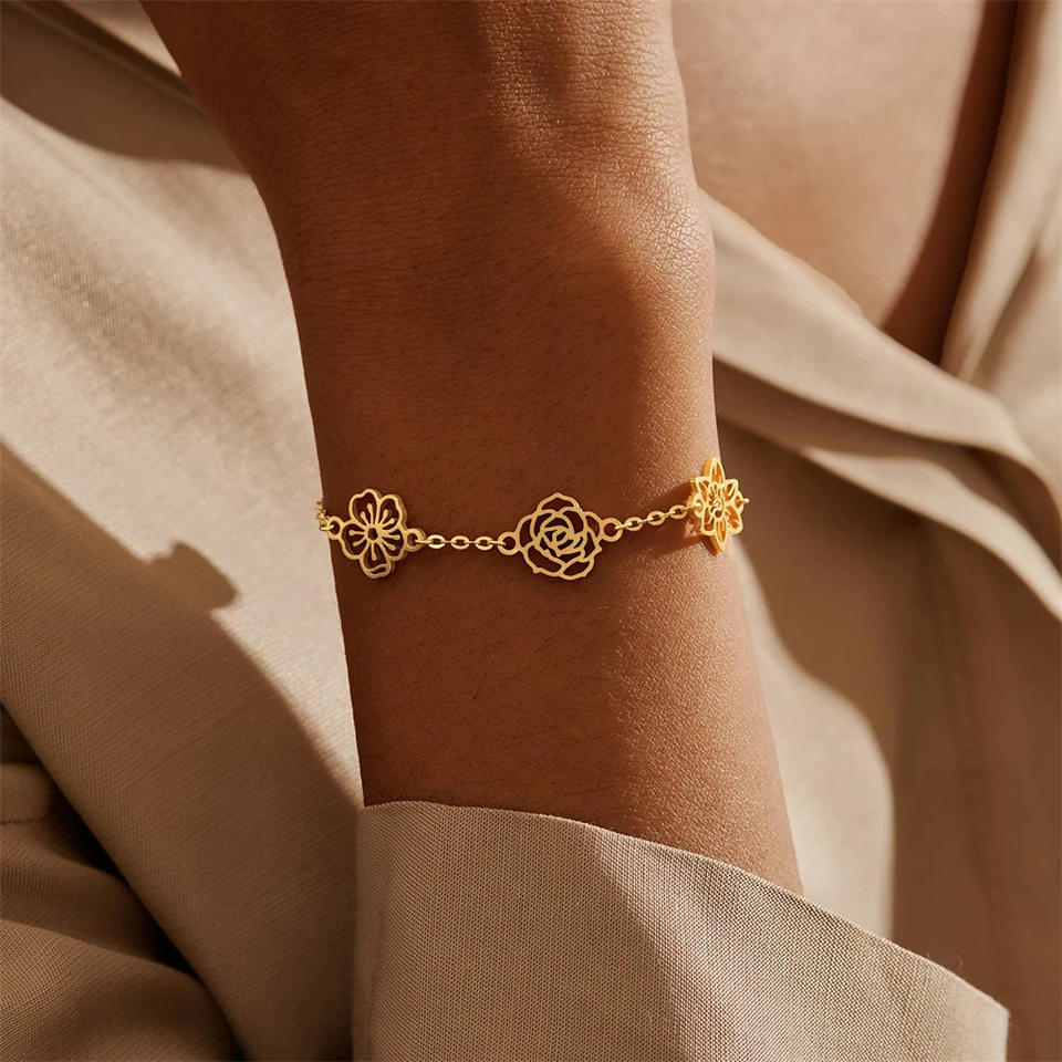 Stainless steel Birth Flower Bracelet Family Bracelet For Mom DIY Custom Dainty Birth Flower Necklace Jewelry