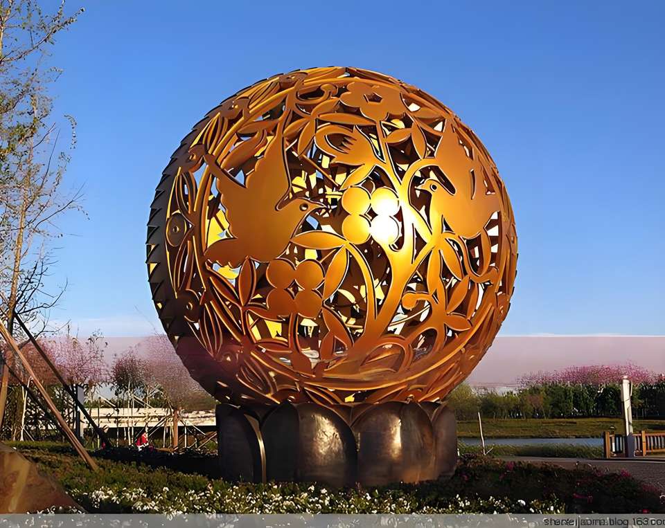 Modern Design Large Outdoor Stainless Steel Hollow Mirror Sculpture Square Garden Ornament with Landscape Features