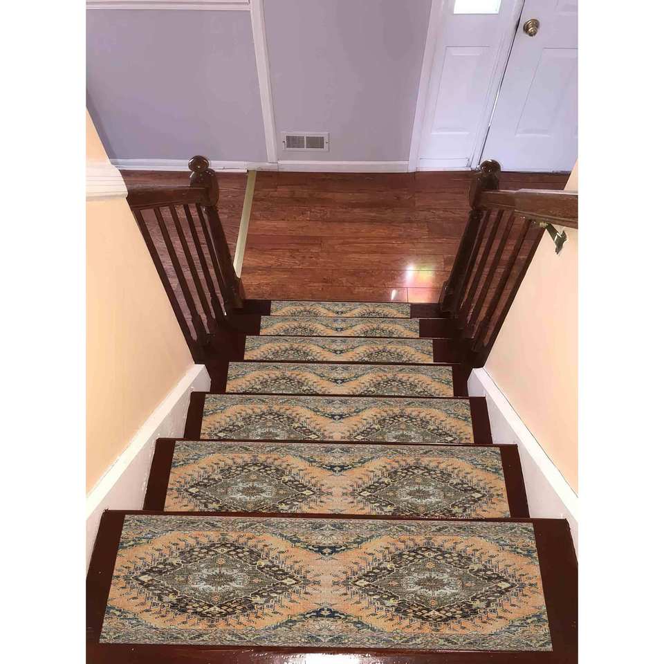 Tapis d'escalier imprimé - Design moderne à motifs médaillon avec des tons doux, Gobelin
