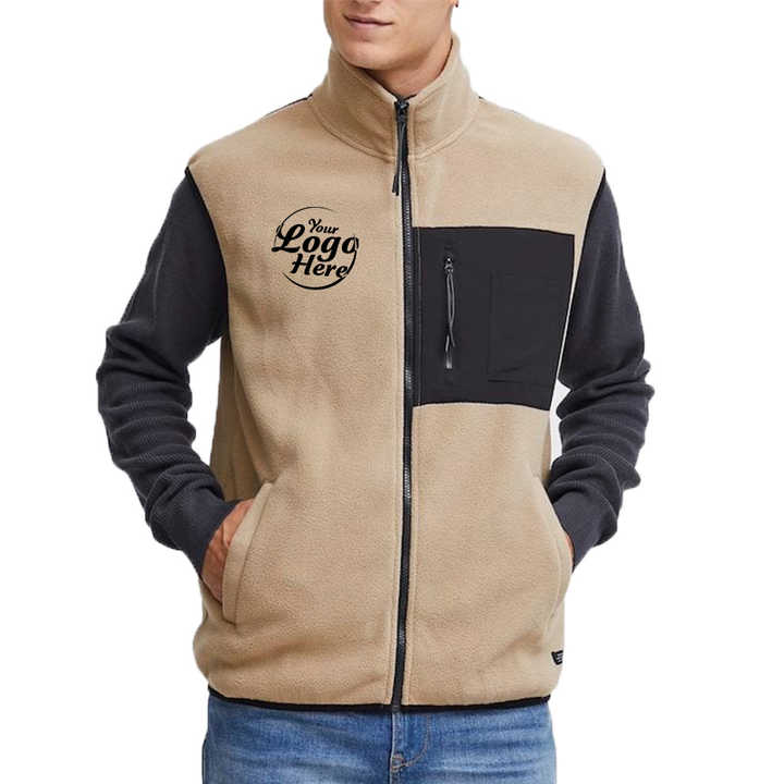 Veste à col montant avec fermeture éclair Color Block Sweat-shirt polaire d'hiver pour homme avec poches chaudes et poignets réglables