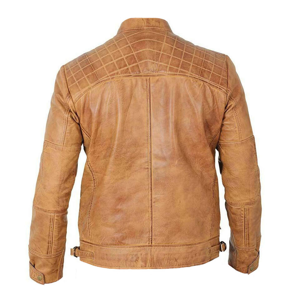 Stand Collar Distressed Leather Jacket/OEM Custom Waxed Sheep Vintage Leather Jacket/2022 Slim Fit Mens Leather Jacket