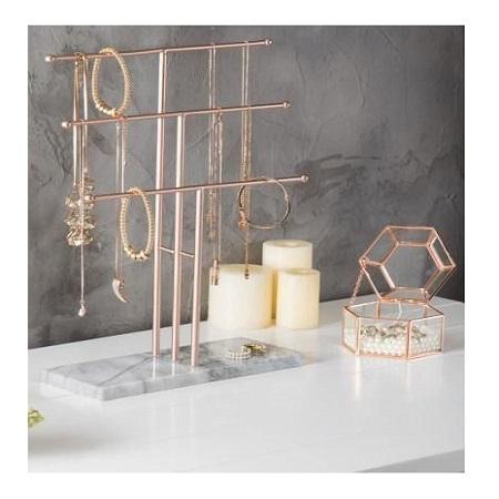 Support à bijoux de conception standard, couleur or rose, support à bijoux en fer à 3 niveaux, bonne qualité, taille personnalisée