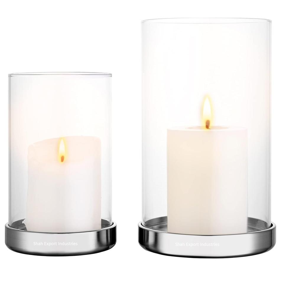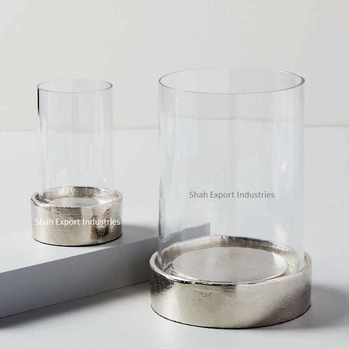 Bougeoir rond en métal et verre de conception standard ouragans argent fini pour la décoration de table de maison et de noël